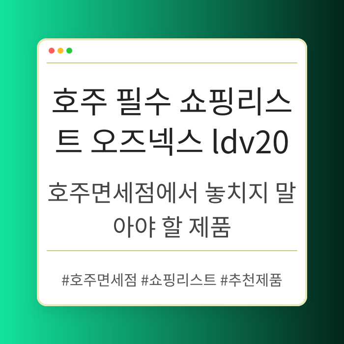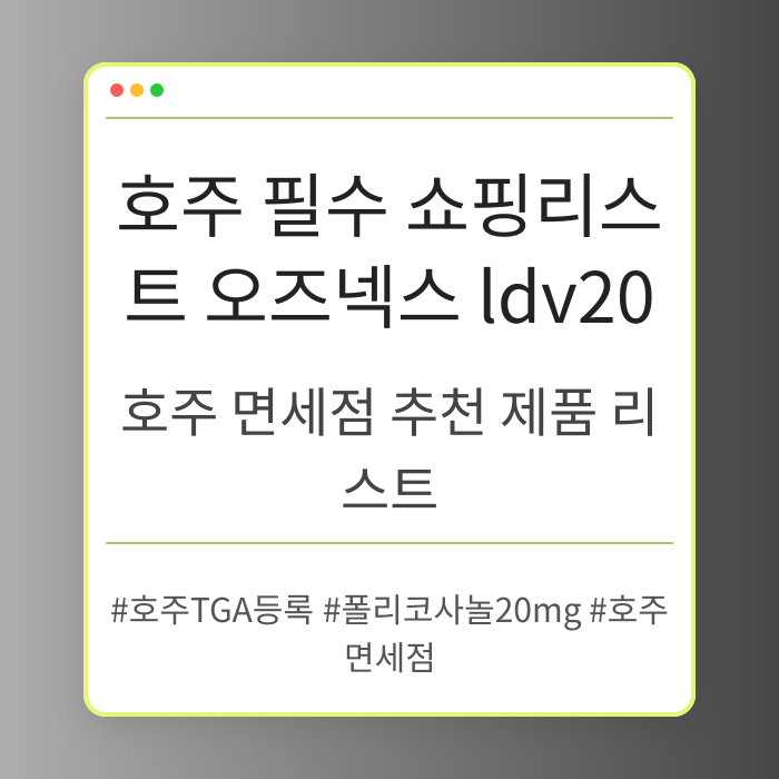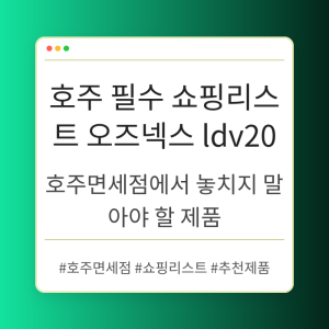 호주 여행객이라면 꼭 챙겨야 할 면세점 추천 제품들을 소개합니다. TGA 인증을 받은 오즈넥스 LDV20와 같은 특별한 제품들을 통해 건강과 휴식을...