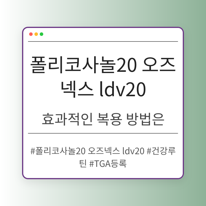 폴리코사놀20 오즈넥스 ldv20에 대해 자세히 알아보세요. 이 제품의 주요 성분들과 그것들이 어떻게 건강에 기여할 수 있는지 살펴보며, 믿고 꾸준히 섭취할...