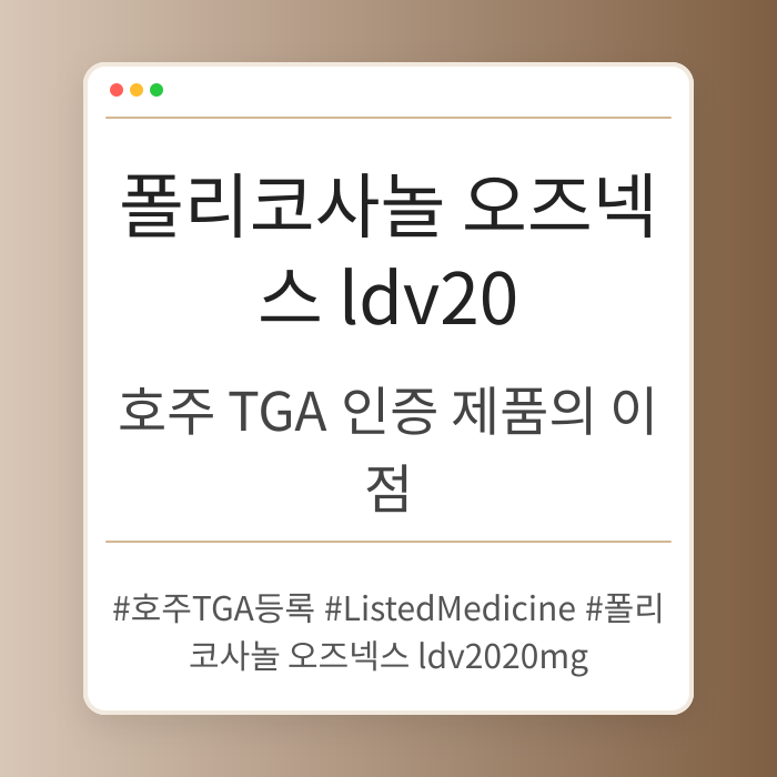 폴리코사놀 오즈넥스 ldv20은 호주 TGA에서 인증받은 제품으로, 고품질 성분이 포함되어 있습니다. 이번 글에서는 폴리코사놀 오즈넥스 ldv20의 이점과 LDV20의 특징에 대해...