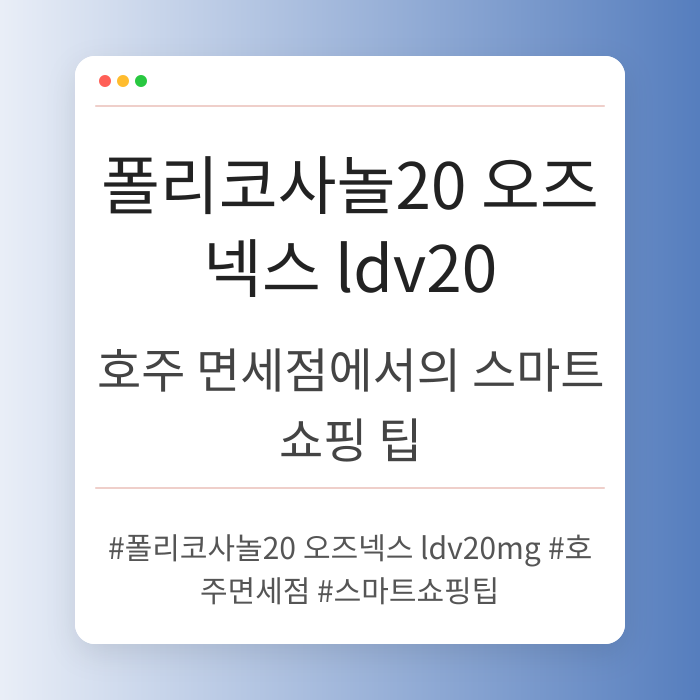 호주 면세점에서 폴리코사놀 제품을 효율적으로 구매하기 위한 스마트 쇼핑 팁을 소개합니다. 현명한 선택을 통해 건강을 챙기는 방법에 대해 알아보세요. 🛍️...